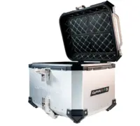 Bauletto GPR TECH TOP CASE ALPI-TECH capacità 35 Litri, realizzato in alluminio 5052, colore argento,la dimensione permette la custodia di un casco Enduro,la piastra specifica e viteria per installazione sul portapacchi originale senza modifiche sono incluse nel kit. Il bauletto GPR TECH comprende una fodera estraibile e lavabile per la protezione del casco, quattro punti di ancoraggio offrono una resistenza ottimalae . Si possono acquistare separatamente come optional la protezione schienale e la borsa oggetti estraibile.