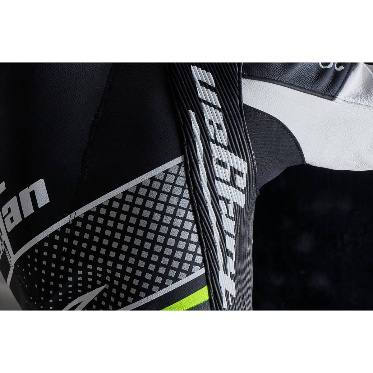 Un materiale resistente ed elastico, strategicamente posizionato per mantenere la facilità e il comfort, durante i movimenti necessari per la corretta guida di un veicolo a due ruote.