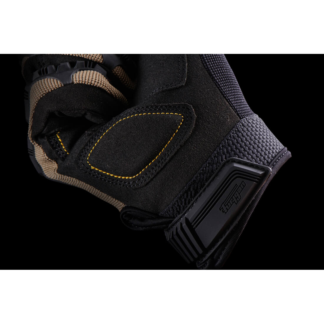- Rinforzi sui palmi e le dita: questi rinforzi sono realizzati in microfibra sintetica a forte tenuta, che aumenta l’aderenza al manubrio e la resistenza all’usura.
