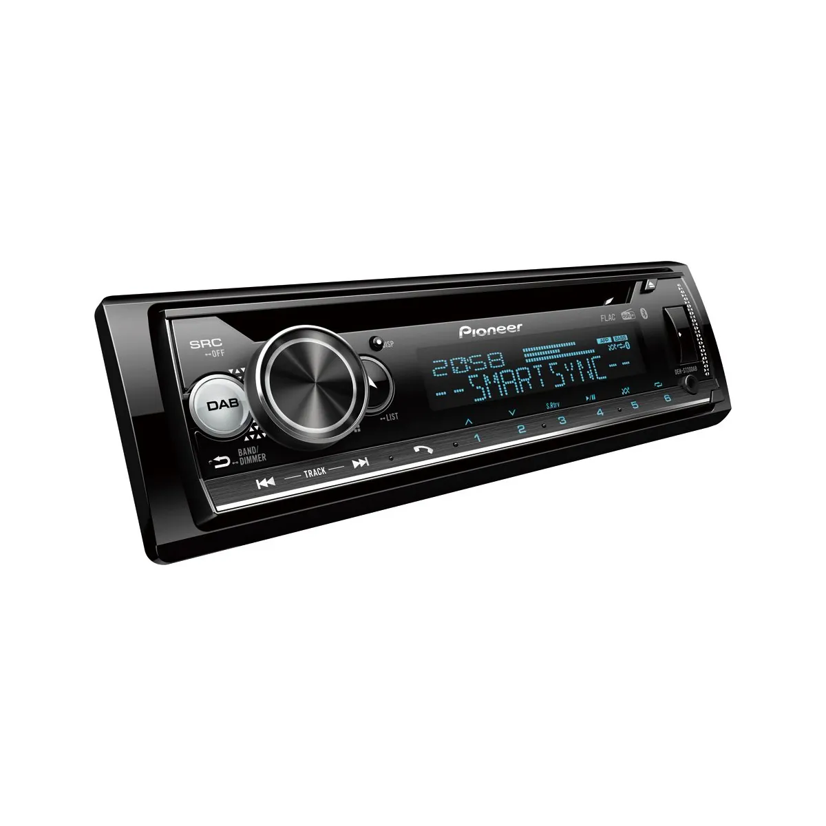 Il DEH‑S720DAB combina un lettore CD, radio digitale DAB/DAB+, streaming Bluetooth e un’illuminazione multicolore personalizzabile in un formato 1‑DIN. Grazie al supporto dell’app Pioneer Smart Sync, puoi integrare funzioni come navigazione, messaggistica e streaming. L’equalizzatore a 13 bande, la funzione Dynamic Bass Enhancer e l’Advanced Sound Retriever garantiscono un suono di qualità.