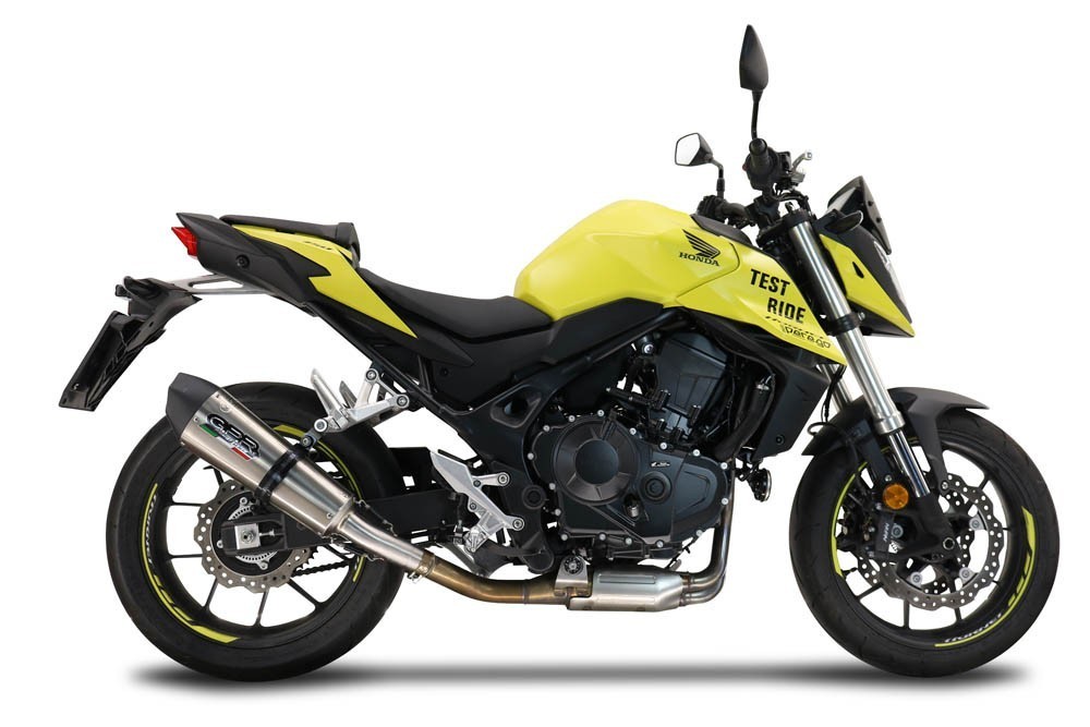 Descrizione del terminale: Il nuovo Grand Prix Evo Titanium di GPR è stato creato per celebrare i 20 anni di presenza nel campionato mondiale MotoGP/Moto2/Moto3. La presentazione della prima linea Grand Prix risale infatti al 2005, in occasione del debutto con il Team Konica Minolta e il pilota Makoto Tamada e il Team LCR con il pilota Casey Stoner. Il silenziatore è conico, con una forma speciale che parte da un diametro di 90 mm per arrivare a 130 mm di circonferenza e lunghezza che variano a seconda della moto di destinazione. Presenta un fodero in titanio realizzato con colore naturale, fondello nero ricavato tramite lavorazione CNC con uscita pentagonale e dbkiller.