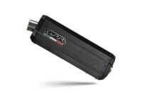 Terminale SONIC POPPY della nuova generazione di prodotti GPR,silenziatore realizzato con fondelli in Ergal ricavati dal pieno mediante lavorazione CNC, scarico con uscita doppia e corpo in acciaio inox 304 carbon look lucido, realizzato con un processo di produzione green ad impatto ambientale zero