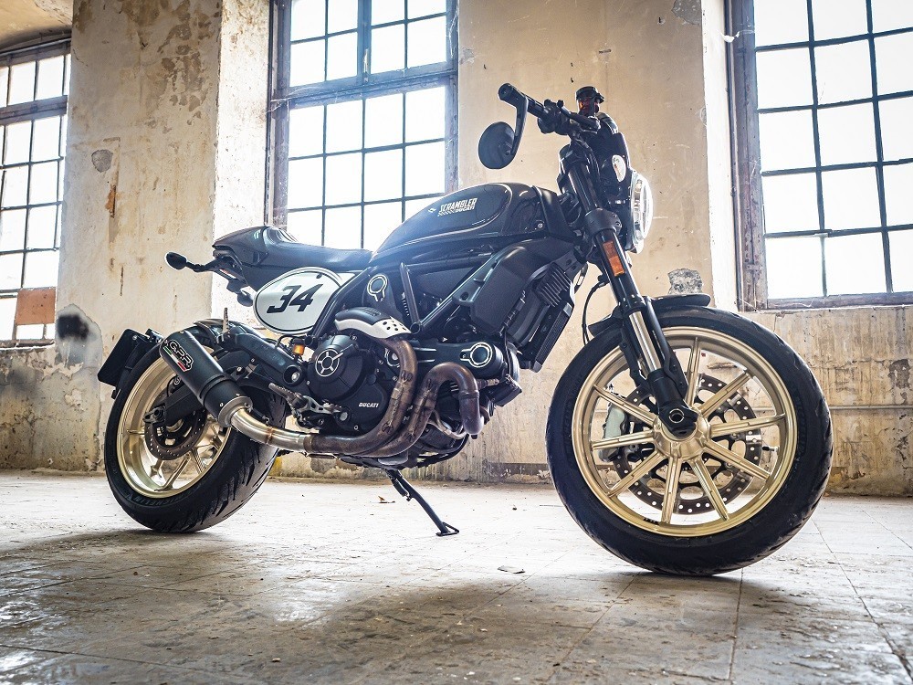 Scarico GPR compatibile con Ducati Scrambler 800 2015-2016, M3 Black Titanium, Terminale di scarico omologato,fornito con db killer estraibile,catalizzatore e raccordo specifico