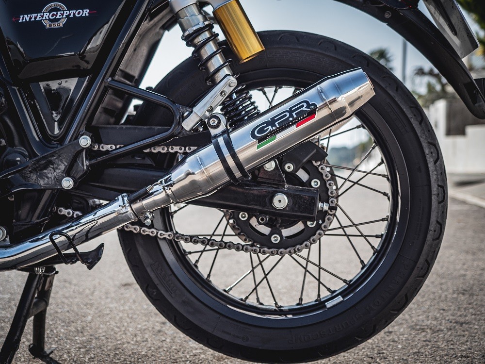 Scarico GPR compatibile con Royal Enfield Interceptor 650 2019-2020, Deeptone Inox, Coppia di terminali di scarico omologati, forniti con db killer removibile, catalizzatori e raccordi specifici