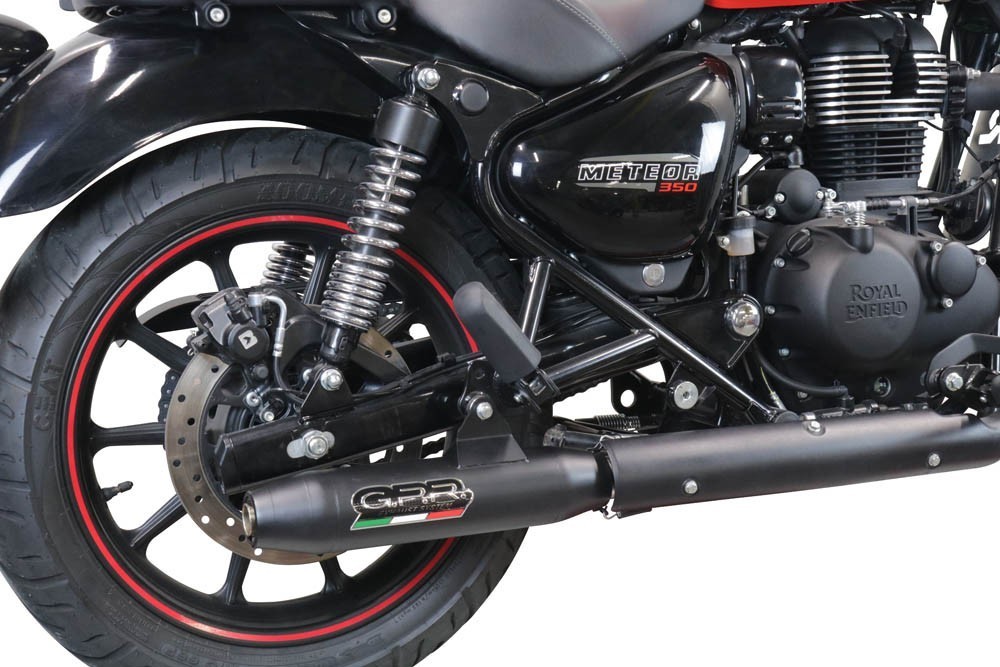 Scarico GPR compatibile con Royal Enfield Meteor 350 2021-2023, Deeptone Nero, Terminale di scarico omologato, fornito con db killer estraibile, catalizzatore e raccordo specifico
