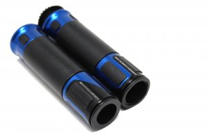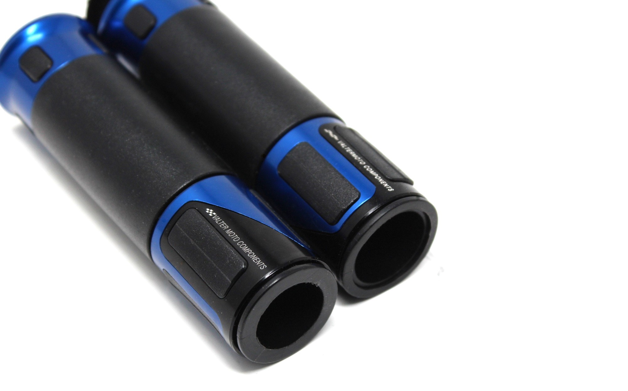 Gomma antiscivolo ed inserti in alluminio lavorati CNC. Utilizzabili su manubri Ø22. Tubo comando gas incluso. Non utilizzabili su Aprilia, MV, KTM, BMW e comando gas elettronico.