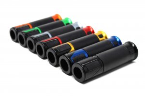 Gomma antiscivolo ed inserti in alluminio lavorati CNC. Utilizzabili su manubri Ø22. Tubo comando gas incluso. Non utilizzabili su Aprilia, MV, KTM, BMW e comando gas elettronico.